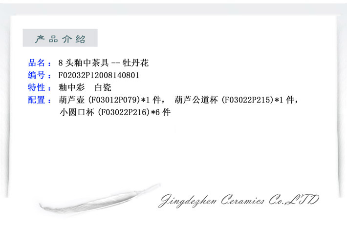 8頭釉中茶具--牡丹花