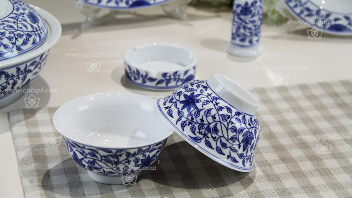 56頭青花手繪纏枝蓮中餐具