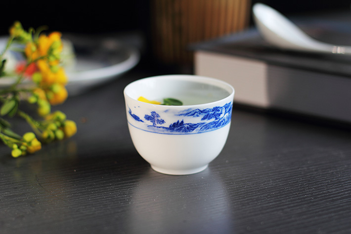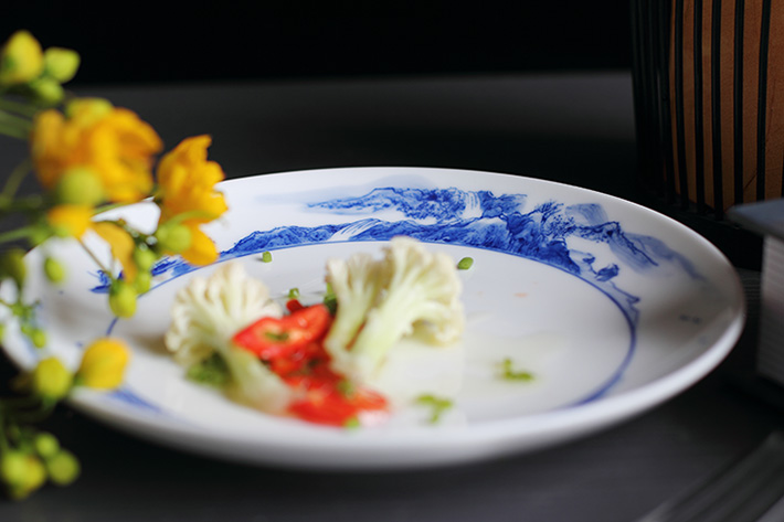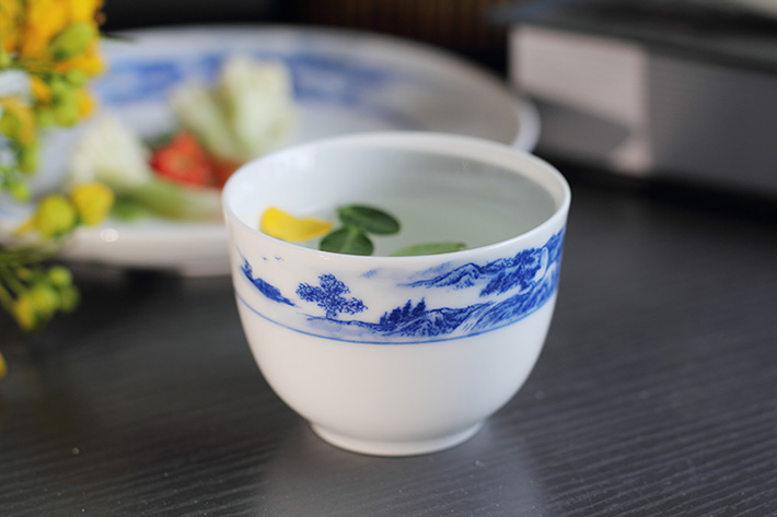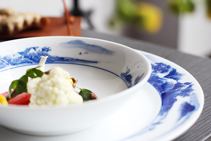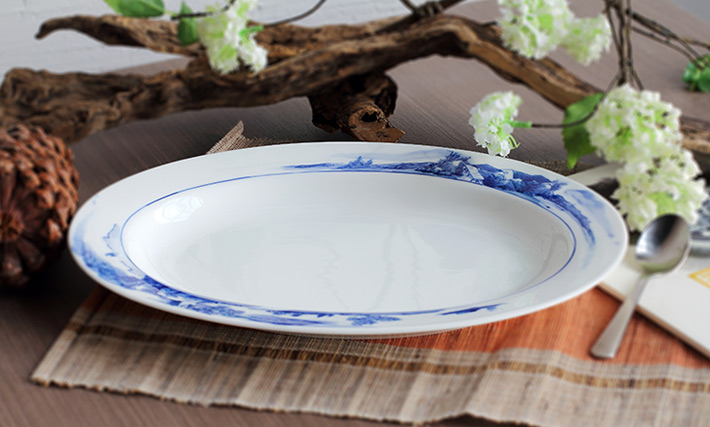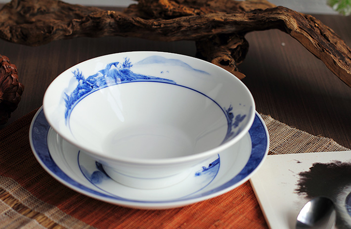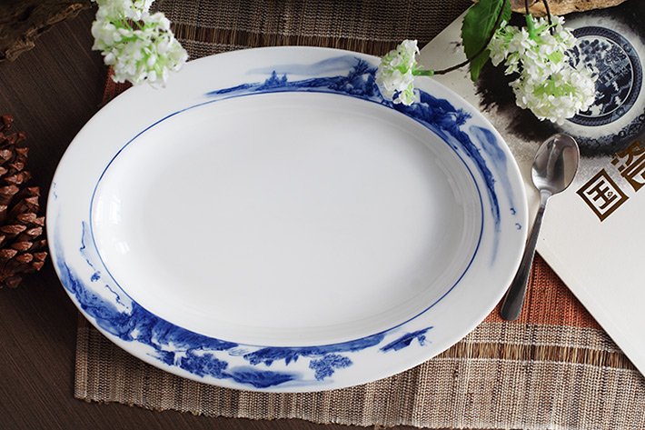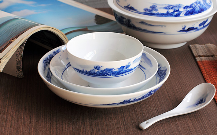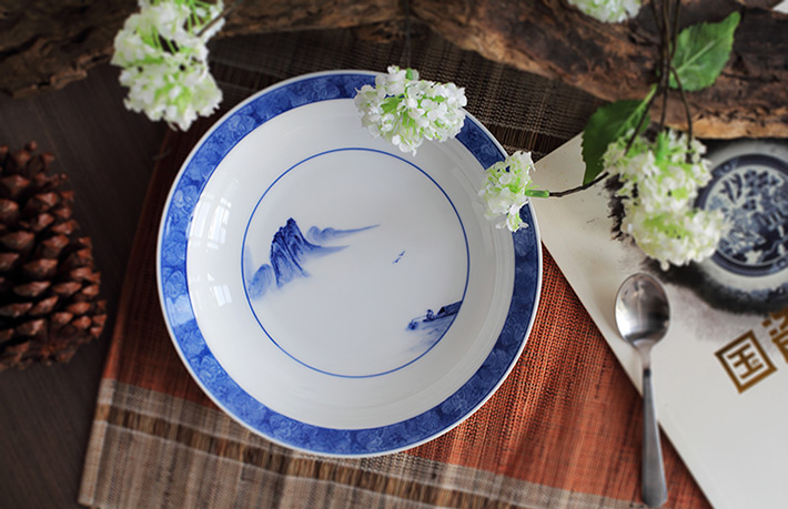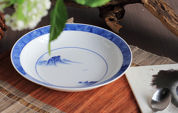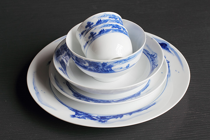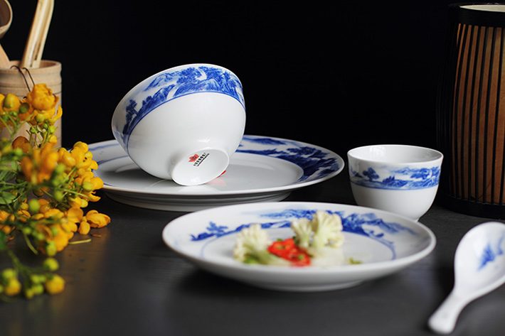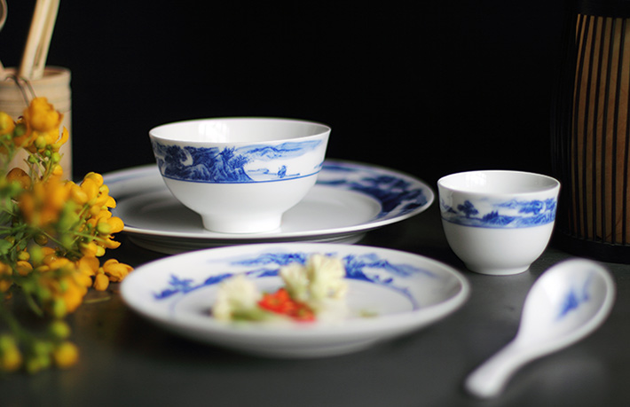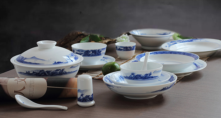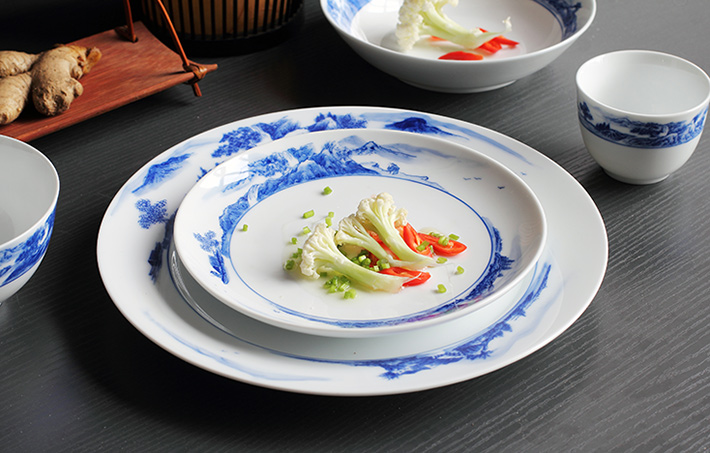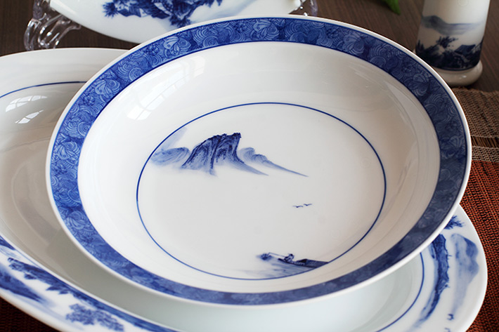 56頭釉下彩中餐具山水