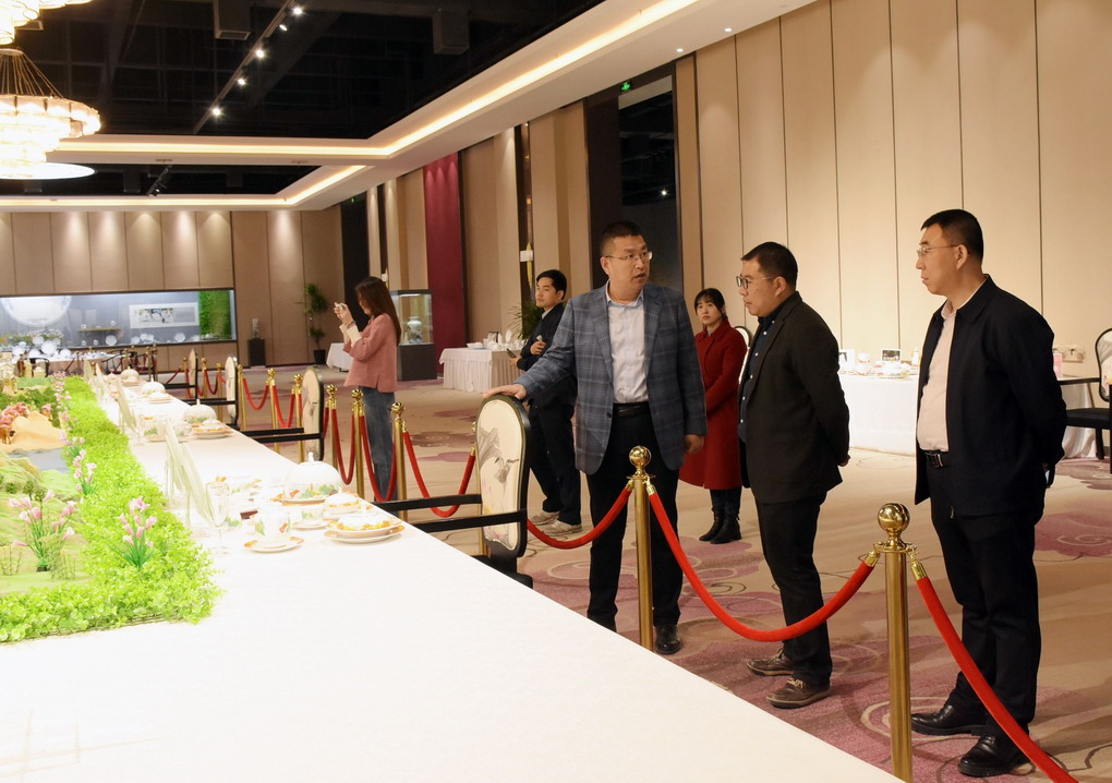 在國瓷館參觀期間,邢浩向調(diào)研組一行簡要介紹了集團公司發(fā)展歷程。在陪同大家品鑒“紅葉陶瓷”精品時,邢浩一邊講解陶瓷先進生產(chǎn)工藝,一邊講述一套套有關“國瓷”的故事。