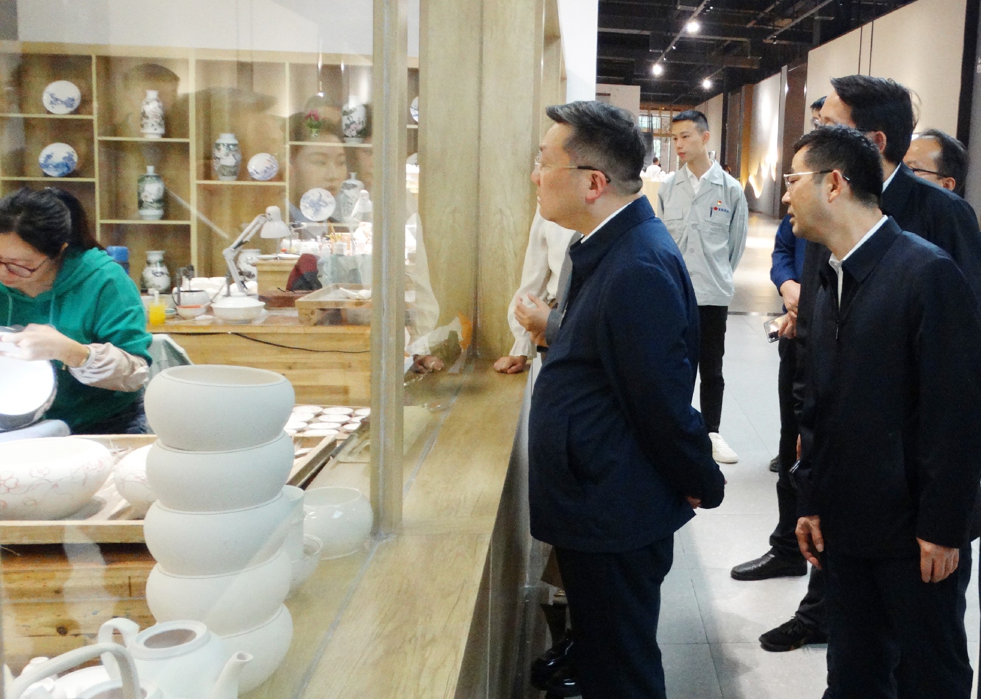 10月19日下午,長沙市委常委、宣傳部部長陳澎一行到景陶集團(tuán)考察,長沙市委宣傳部分管日常工作的副部長、市新聞出版局局長周海毅,市委宣傳部部務(wù)會成員劉玉龍,馬欄山視頻文創(chuàng)園黨工委書記曾雄,望城區(qū)委常委、宣傳部部長陳曠,市委宣傳部辦公室主任陳敏,市委宣傳部政研室主任賀明明,市委宣傳部文產(chǎn)處處長王青,市委宣傳部版權(quán)處處長譚曉丹,市委宣傳部干部處處長王林平,市委宣傳部辦公室副主任劉斌,市委網(wǎng)信辦綜合處副處長韓勇隨同,景德鎮(zhèn)市委宣傳部常務(wù)副部長董軍發(fā)陪同,景陶集團(tuán)黨委委員胡軼接待。