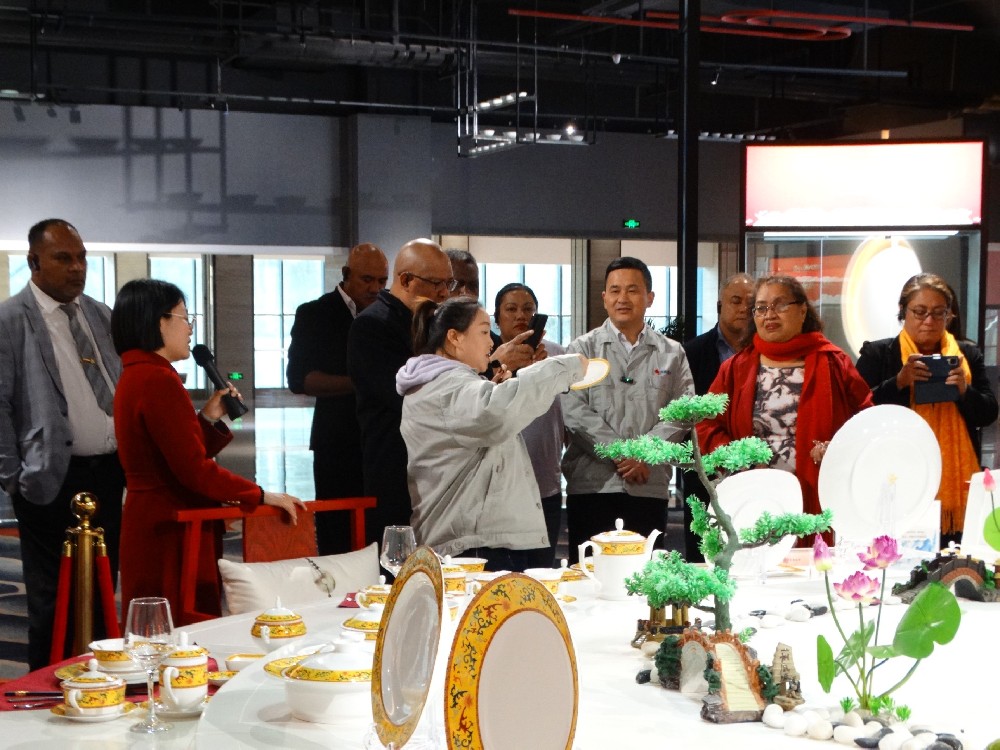 11月24日下午,太平洋島國議員研討班一行到景陶集團(tuán)考察。省人大常委會副主任胡世忠,省人大常委會秘書長、辦公廳主任楊文英,省人大常委會外僑民宗工委主任韓軍,省人大社會委副主任委員趙慧,省人大常委會辦公廳副主任溫雪松陪同。景陶集團(tuán)黨委書記、董事長鄧景揚陪同接待。
