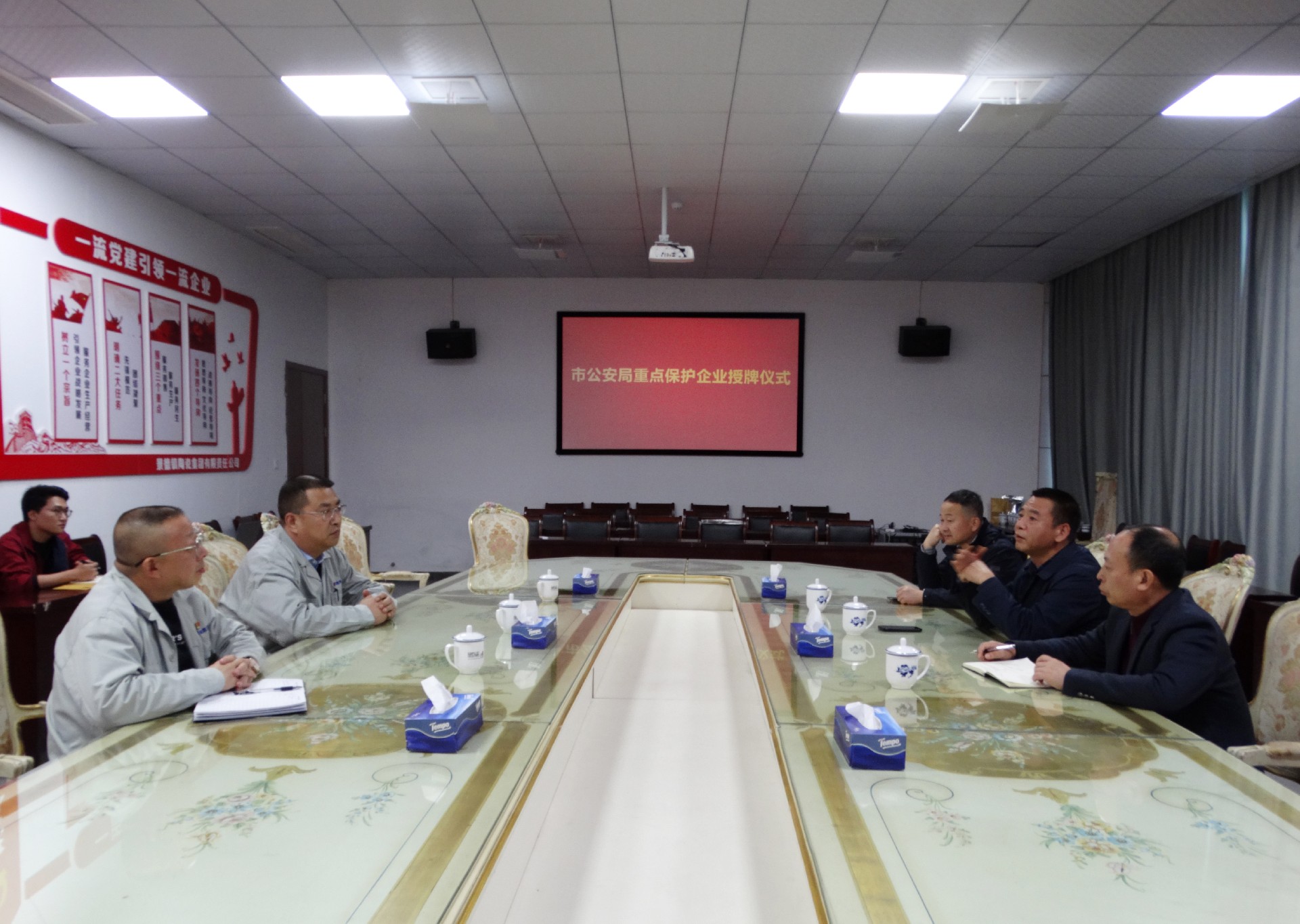 12月1日下午,市公安局在景陶集團(tuán)一樓會(huì)議室舉行重點(diǎn)保護(hù)企業(yè)授牌儀式。景德鎮(zhèn)市公安局食藥環(huán)偵查分局局長(zhǎng)周興妙,副局長(zhǎng)趙敬展,知識(shí)產(chǎn)權(quán)大隊(duì)長(zhǎng)徐廣志出席授牌儀式。景陶集團(tuán)黨委副書記、總經(jīng)理邢浩,副總經(jīng)理袁建國(guó)參加授牌儀式。