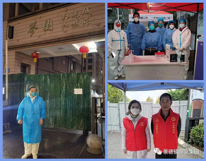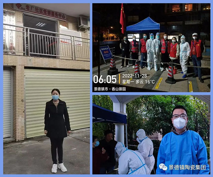班子成員靠前指揮、科學(xué)調(diào)度、干在一線(xiàn)。景陶集團(tuán)黨委書(shū)記、董事長(zhǎng)周敏建既是集團(tuán)公司疫情防控工作總指揮,又是所在社區(qū)居住樓樓長(zhǎng),同時(shí),還以黨員志愿者身份,每天堅(jiān)守在防疫一線(xiàn)。