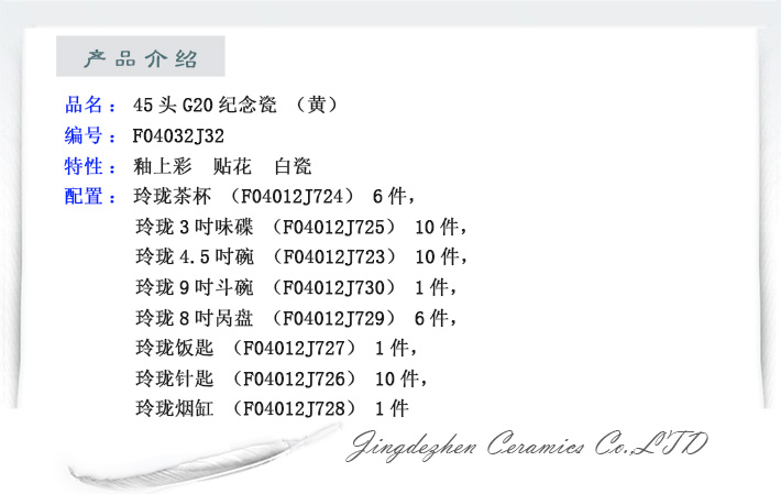 45頭G20紀(jì)念瓷(黃)